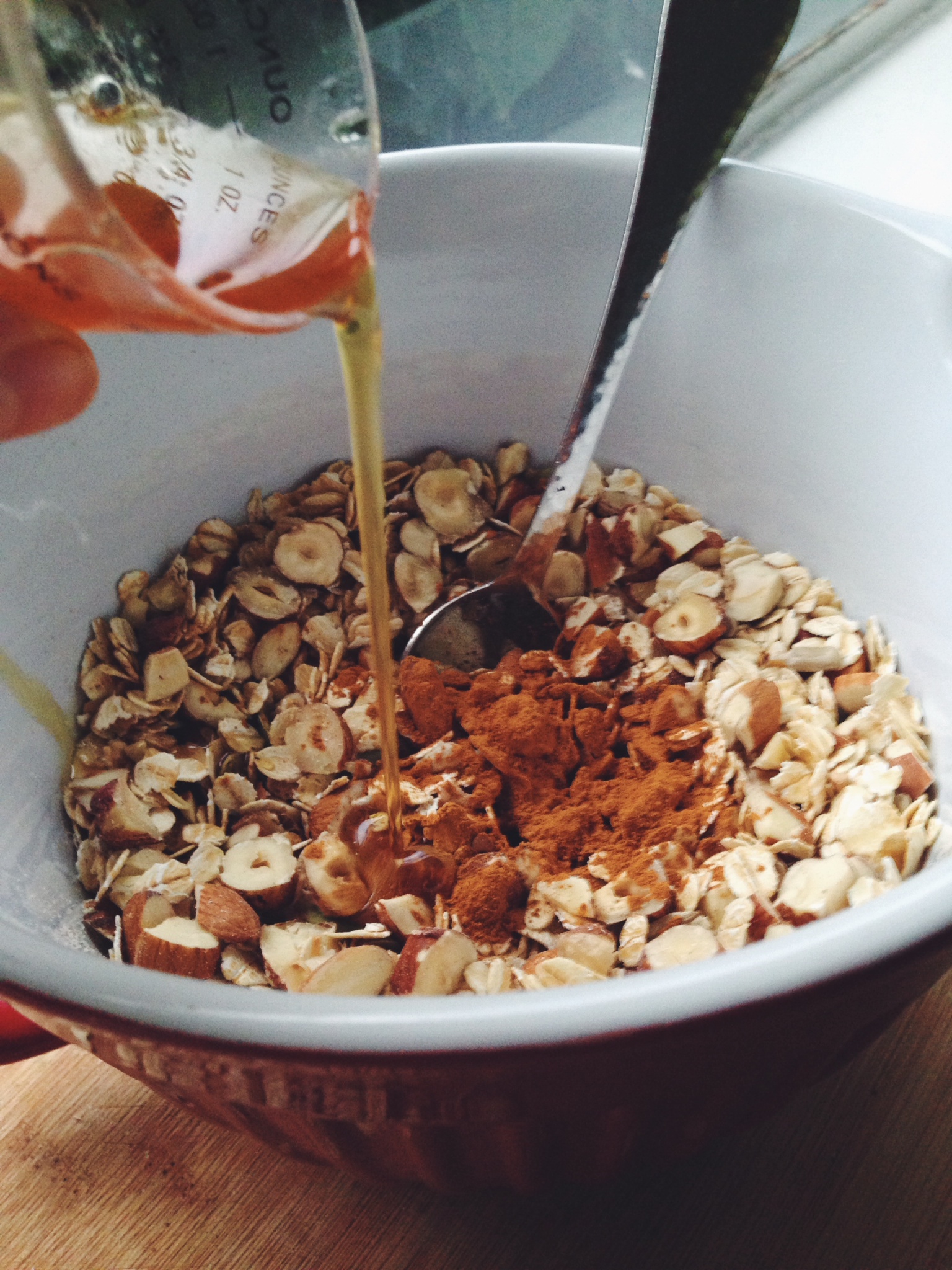 My love for making this stemmed from Teresa Cutter’s Granola recipe. The wafts of honey & cinnamon from the oven is divine and well, having control on the amount of nuts in your breakfast bowl is just the best.