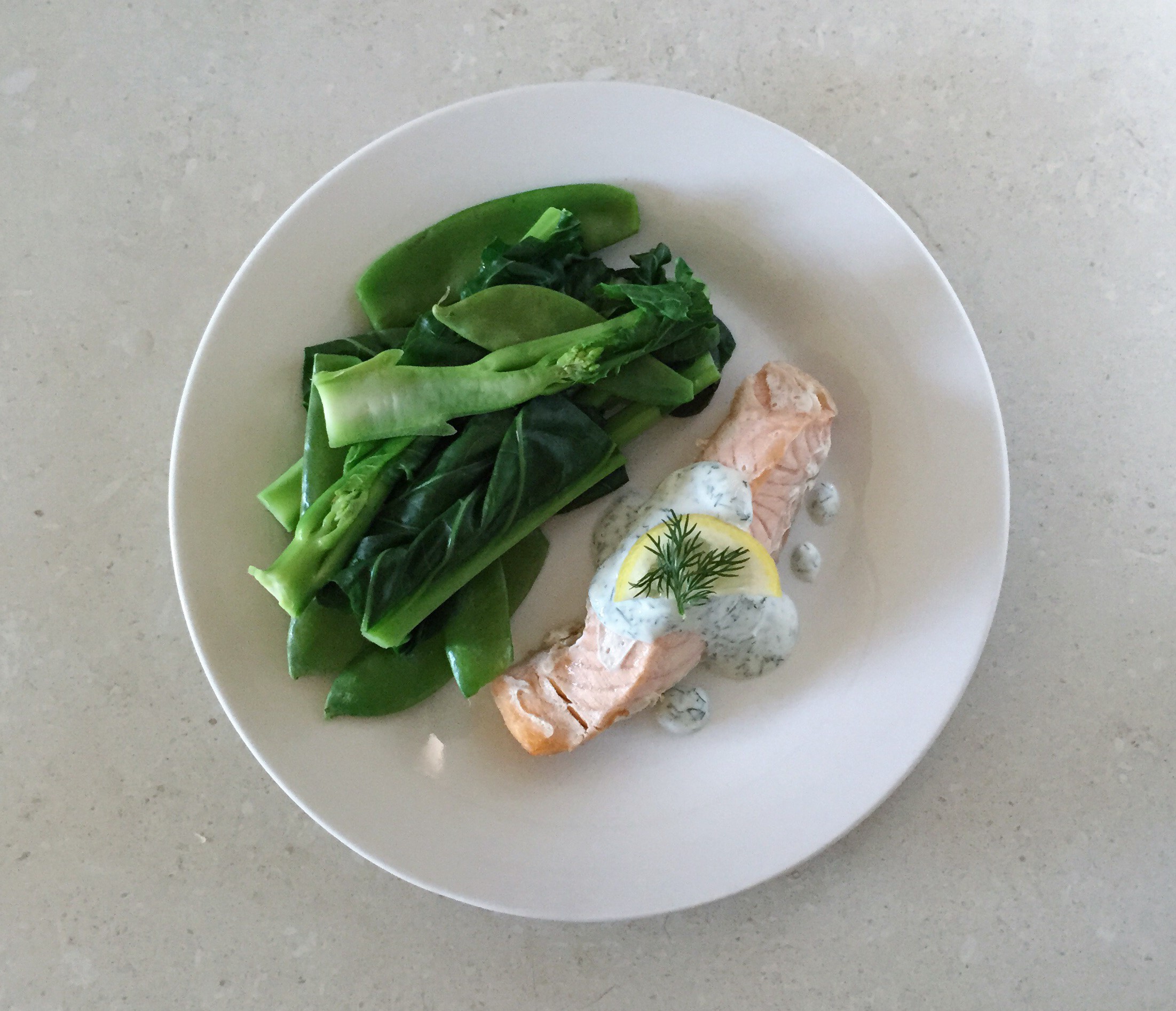 I suggest cooking the salmon as per the instructions. This was a little freezer number that I just whipped in the oven. The sauce is super simple. Just mix the following in a bowl, and serve with the salmon once its cooked.