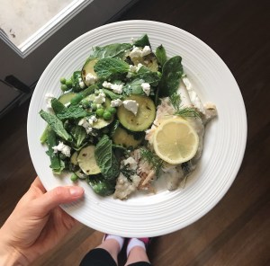 What’s in it: zucchini, peas, green beans, mint, spinach, feta, lemon zest & juice, olive oil