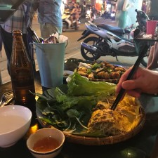 - Royal Saigon Restaurant Bui Vien (Trip advisor recommendation, on the walking backpacker street) – we enjoyed this place for our final night in Saigon – we sat on a table on the footpath and watched the nightlife. We chose the ‘See you again Vietnam’ platter (fried and fresh spring rolls, chicken skewers, wontons, minced pork and beef wrapped in betel leaf, shrimps wrapped in potato) and Banh Xeo (crispy vietnamese pancakes). It was delicious and the staff were fantastic!