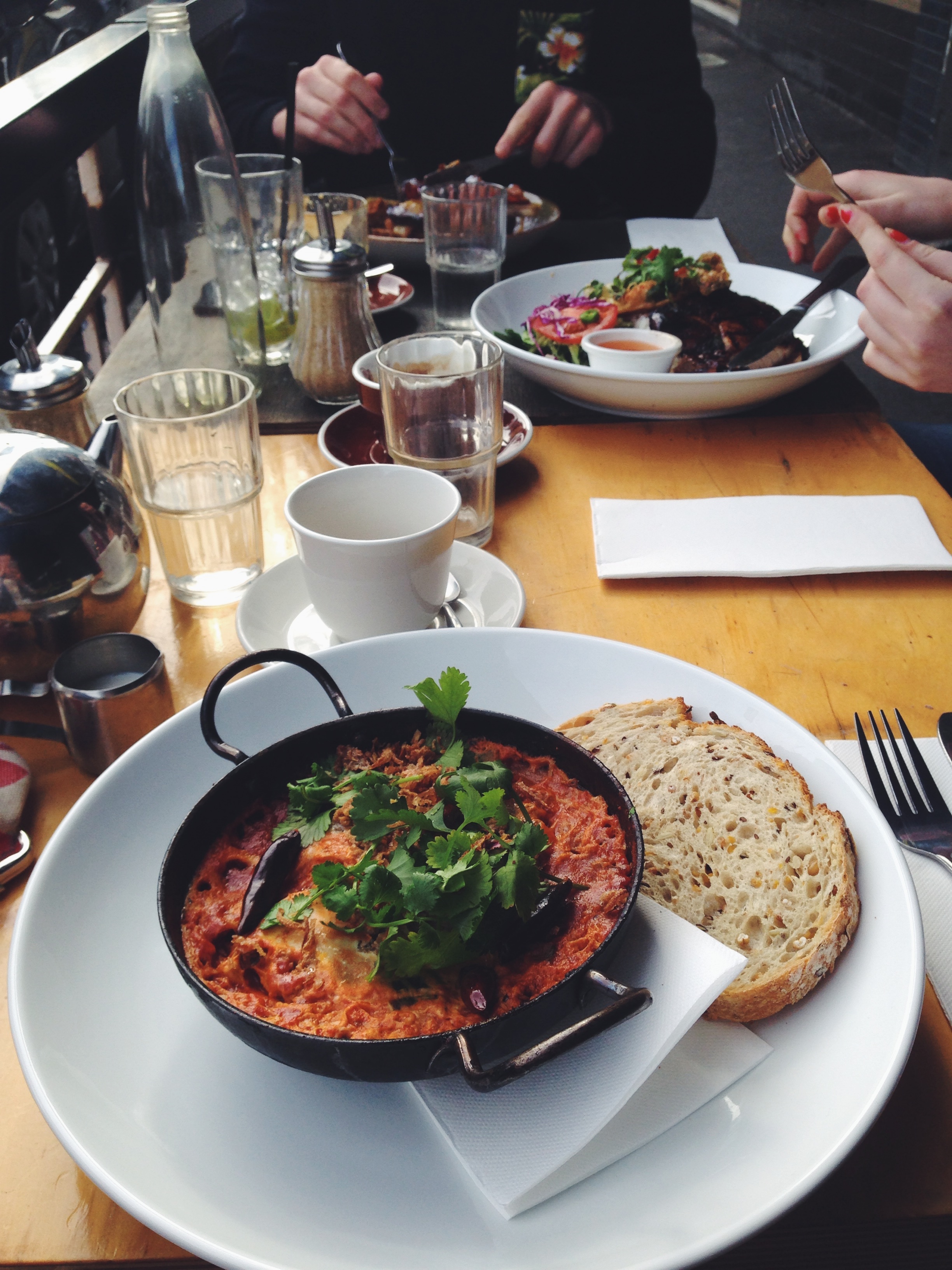 After having some well earned beverages Saturday night, we spent part of Sunday exploring our new ‘hood. We believed the only way to tackle a house full of boxes was to start with a good breakfast. Melbourne had put on a glorious day so we walked (!!) down to Sydney road with hopes of finding a table at Green Refectory. Unsuccessful, a quick check on Urbanspoon (one of my favourite apps) had us en route to Tom Phat. Gorgeous looking waiters AND a table outside, it was a great decision. The food was delicious too.